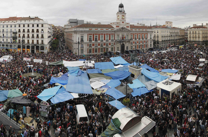 Since the demonstrations called last Sunday, the central squares of cities all across Spain have been occupied by camps of protestors, furious at austerity and the uselessness of all the existing politicians and the pointlessness of this coming Sunday's local elections.