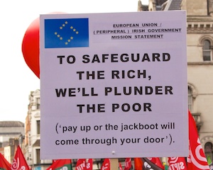 If we accept that this deal was never meant to provide justice to the people of Ireland, then we have to judge its success or failure on other grounds, the ones it was designed to fulfill. From that perspective the willingness of the rulers of the French, Germans, British and others to drive countries like Ireland and Greece and Portugal, each of us less than 2% of the Eurozone economy, into ruination is understandable, albeit unforgiveable. Just as there is no honour amongst theives, so there is no solidarity amongst capitalists.