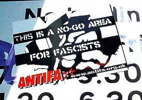 Anti-fa is committed to physically and idealogical opposition to fascism. The 'Antifa' initiative has come from members of the Anarchist Federation, Class War Federation, and No Platform. Although coming from the anarchist tradition, antifa are open to work with any group/individual that is serious about militant anti-fascism, but will NOT work with any state affiliated groups. Image: *eightball* - http://flickr.com/photos/kola1965/