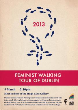 Around 80 people took part in Sunday's annual Feminist Walking Tour to mark International Women's Day. The tour was organised by Choice Ireland, Lashback and RAG and for the first time was confined to the south side of the city, starting at Stephen's Green and ending up in Temple Bar. The audio from the individual stops on the tour is included with this article.
