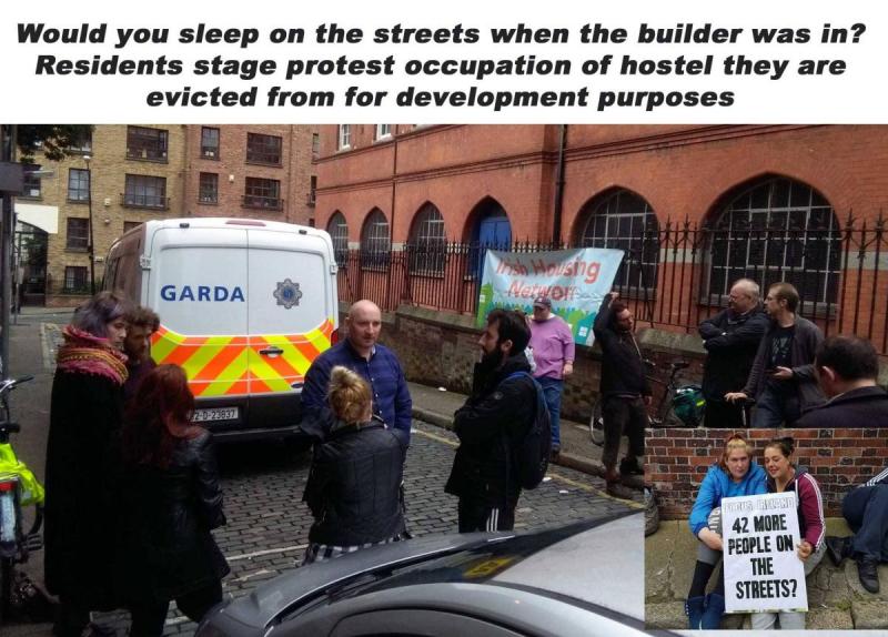 On Tuesday 10th of May eight homeless people (two women, one which was heavily pregnant) and six men with the support of An Spreach and housing activists occupied the Bru Aimsir homeless hostel on Dublin’s Thomas street. The hostel was opened in 2014 as a direct result of homeless man Jonathan Corrie dying, found frozen to death in a doorway just metres away from the Dail.The decision to occupy the hostel was made by the eight homeless people as they had been refused a bed in the hostel for that night, another 42 people were also refused a bed for the night. The beds were took away without warning. The beds were took away as part of the hostels “winding down” period towards its closure on the 29th of May. The building the hostel is in is owned by the government's Department of Communication.