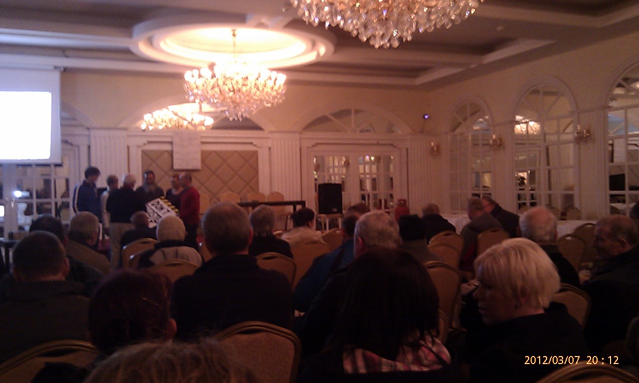 Upon arriving at the meeting in the Derby House at around 7:30pm I found a number of members of the Kildare CAHWT branch making final preparations in the function room. A projector was playing a recording of an interview describing the continuing mismanagement of the Irish economic crisis.