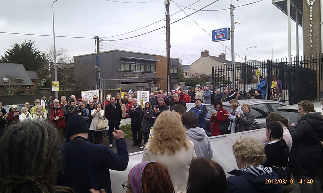 At half past one on Saturday March 10 there were 4 members of the Newbridge Campaign Against Household and Water Charges assembled in the driveway of the Patrician Brothers monastery.We had two megaphones and a placard between us. Needless to say we were eagerly looking around for other members and people to bolster our numbers as the start of the march was scheduled for 2pm.