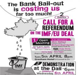 Approximately 300 people attended a meeting in the Gresham Hotel in early April which “endorsed the formation of a campaign, called "Enough!" to resist the IMF EU deal and to demand a referendum.”[i] At first thought it seems to be a campaign which should be enthusiastically supported by anarchists and libertarians. After all we’re always going on about grassroots democracy and about involving people in decisions about things that affect them. And didn’t the people of Iceland have not one but two referenda on their ‘bailout’ in the last 13 months? If they can have two, why shouldn’t we have at least one!