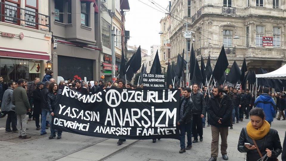 DAF, an anarchist group in the Turkish state held a demonstration for the anarchist prisoner Nikos Romanos who is in hunger strike for 29 days in Greece and for our sisters and brothers who has been murdered while resisting in Greece, in Ferguson, in Mexico, in Kobanê.