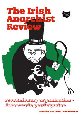 Welcome to Irish Anarchist Review issue 5, produced by the Workers Solidarity Movement. In this magazine we look to explore theories, thoughts and ideas about political struggle. We set out to analyse where we are aiming for as a revolutionary movement and explore how we might get there. The purpose of ‘Irish Anarchist Review’ is to act as forum for a sharing of ideas about revolutionary struggle. Building a successful revolution demands genuine discussion, debate and sharing of ideas. We hope that the articles in here will help to stimulate discussion and provoke debate and perhaps even motivate some of our readers to respond with articles of your own.