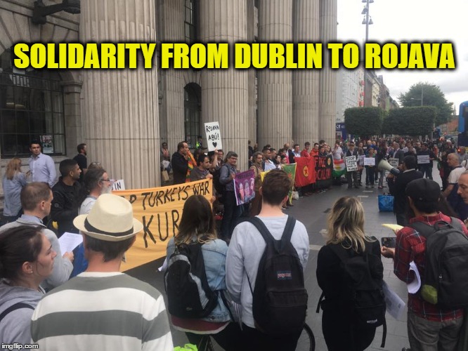 Dublin saw a day of protests in solidarity with the Kurdish Freedom struggle today. The video shows the protest at the GPO, site of the 1916 rebellion against British colonialism 100 years ago. During that rebellion British forces destroyed much of the center of Dublin and murdered civilians much as the Turkish state has been doing in Bakur (SE Turkey) over the last months.