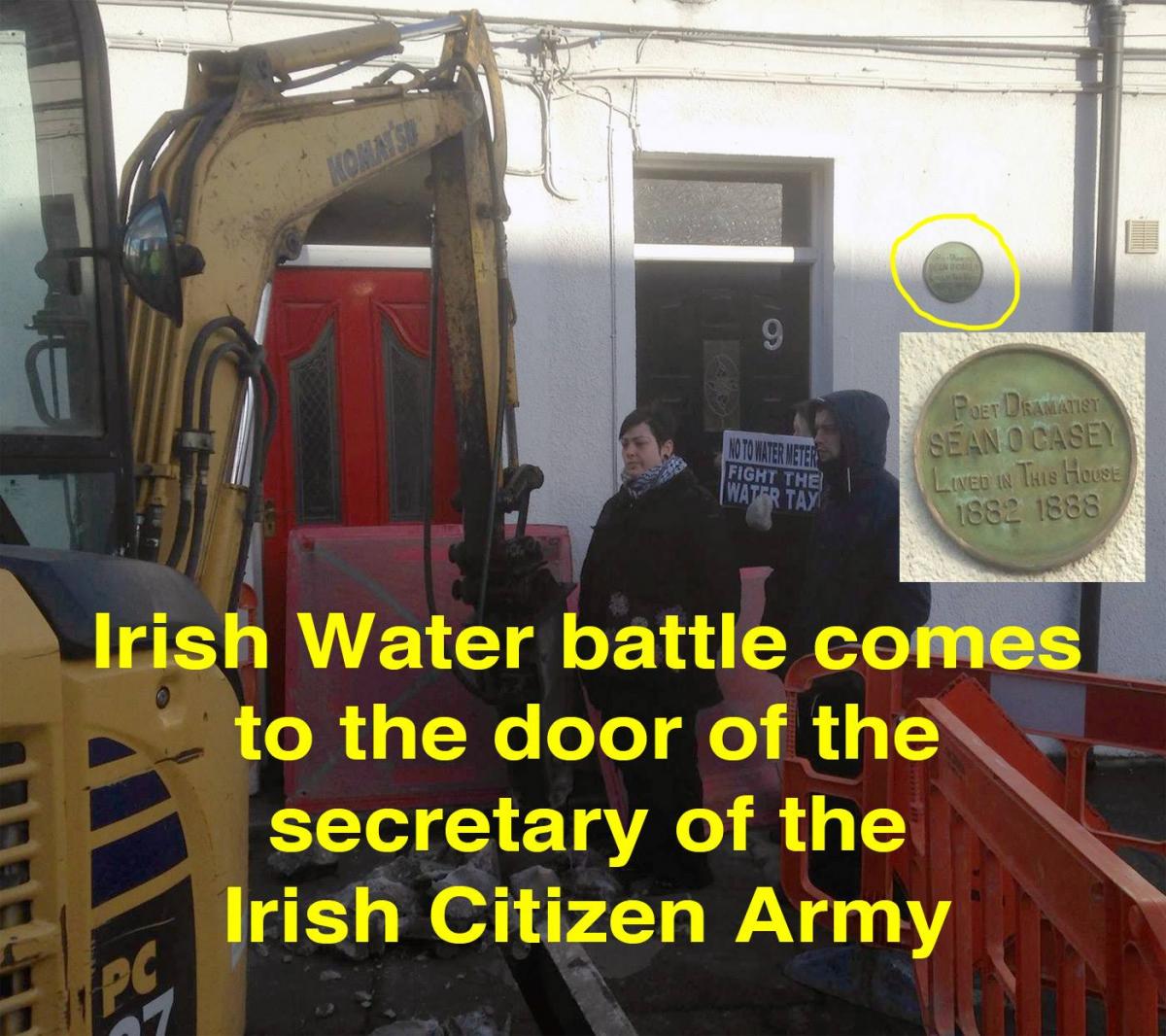 The Irish Water battle came right to the door step of Sean O'Casy's home on Inisfallen Parade this morning. Garda assaults have seen one person injuries and attempted intimidation on balaclava wearing goons hired by Irish Water is continuing.