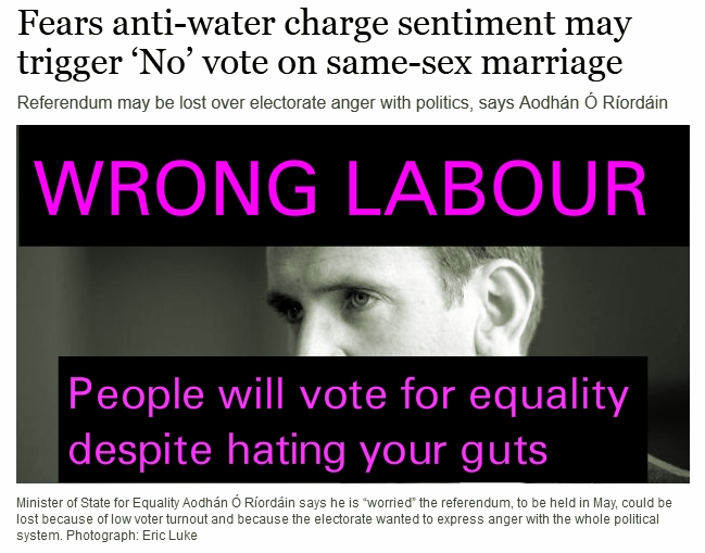 Aidan writes "As a queer and a participant in the anti-water charges movement, I regard Aodhán Ó Ríordáin's comments as a rather cynical and desperate attempt to paint one of the most promising movements for progress in this state as somehow regressive, and to staple together some progressive credentials for himself by co-opting LGBT demands and organising.