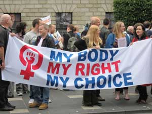 WSM and other pro-choice activists took place in a counter demonstration to the “Rally for Life” which took place in Dublin yesterday. The anti-abortion rally was organised by Youth Defence (including “The Life Institute”(previously Mother & Campaign – an outgrowth of Youth Defense) and Belfast Based "Precious Life". Approximately 2,000 people seem to have attended. The pro-choice counter demonstration, organised at short notice was still attended by around 300 people. Many attending the anti-abortion rally came from all over Ireland and even included a small group of migrants from the Philippines. There were some tense exchanges between pro-choice campaigners and anti-abortion marchers.