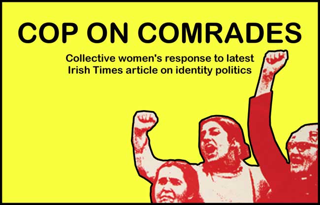 The following has been written by a collective of women activists in Ireland in part in response to an article that appeared in the Irish Times on Identity Politics and the way 'men on the left' engaged with that article. The version here is the original form as published meaning the signatures are those who were involved at some level in the drafting process. Additional names were added after publication, see link at the end. One of our members, Andrew, produced a timeline of key documents and discussion around this piece which explains the context in a lot more details.