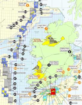 One of the final acts of the last Fianna Fail government was to award licences to a number of companies to explore for commercial gas in the Northwest Carboniferous Basin (more commonly known as the Lough Allen basin). The Lough Allen Basin is a huge area that covers parts of counties Cavan, Donegal, Fermanagh, Leitrim, Mayo, Monaghan, Roscommon, Sligo and Tyrone. It is an area of 8000 square kilometres in total.