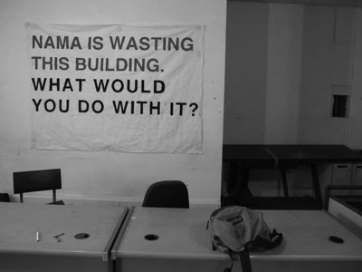 Unlock NAMA (UN) hit the headlines in January after occupying a NAMA building in Great Strand Street, Dublin 1. The aim of the occupation was to open a NAMA building to the public for a day and hold a series of talks on the subject. The group, along with around sixty supporters, were eventually evicted by the Gardaí after the intervention of the receiver but that was only the beginning of the campaign.