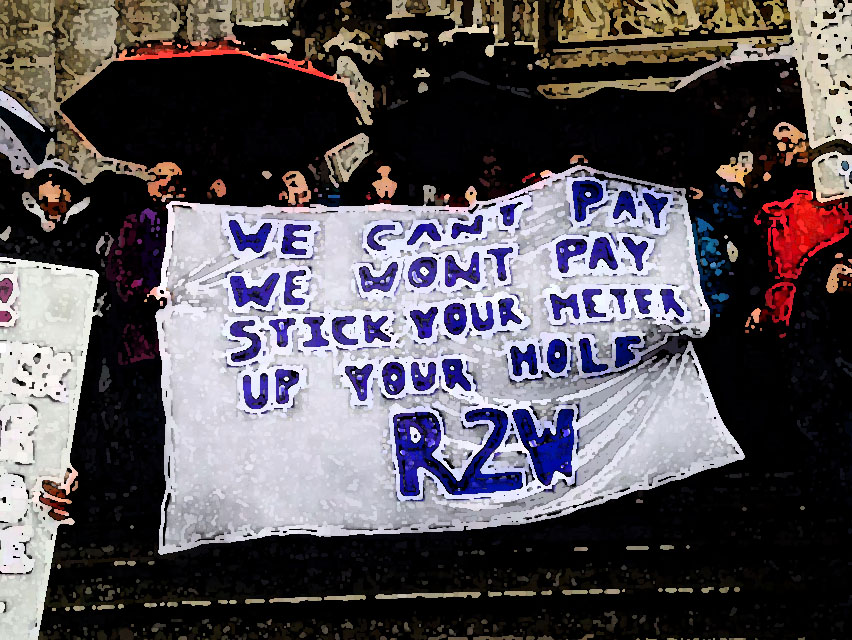 In the face of massive opposition to the water charges, the government have made several clumsy attempts to placate us, while their partners in the media seek to frighten us off the streets. The latest attempt, delivered by Alan Kelly, Minister for the Environment, Community & Local Government in the Dáil on the 19th of November, is the plan to charge us €160 per year for our water and to give ‘eligible households’ a water conservation grant of €100.