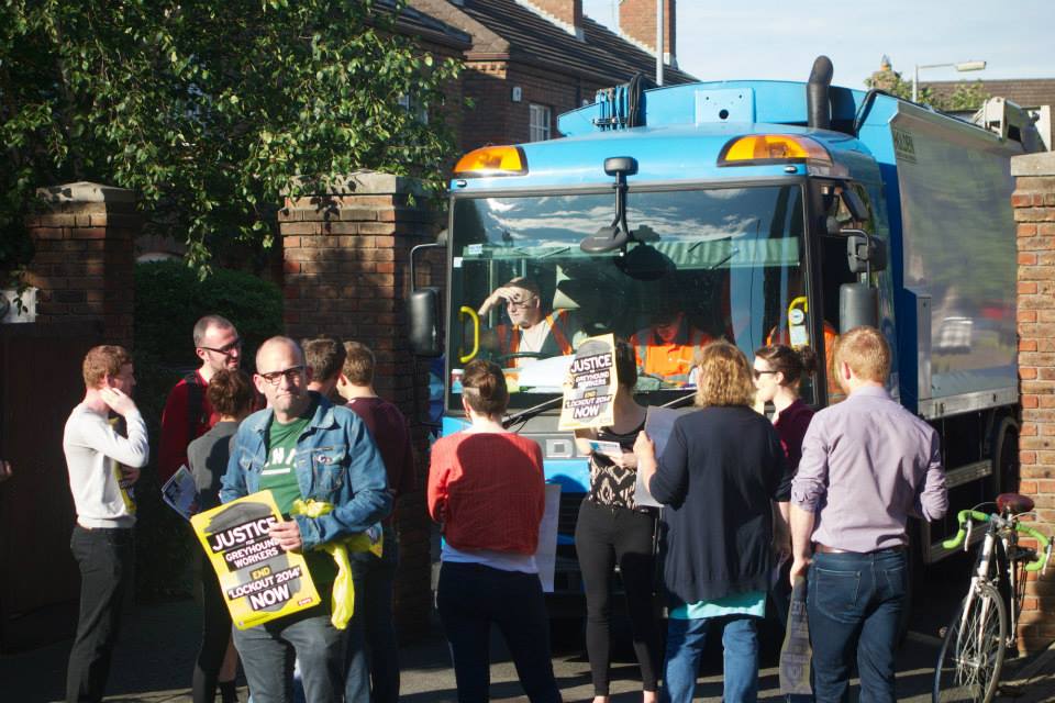 A network of people who knew each other from other struggles in the area organised online to leaflet much of Stoneybatter last night with details about the lockout of the Greyhound workers before blockading two trucks in the area this morning.