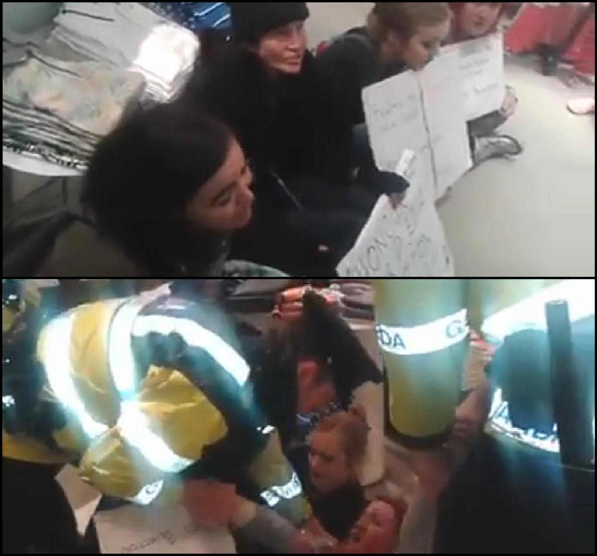 The Gardaí then removed us one by one using unnecessary force. The result was the security saying we were now barred from the shopping centre.