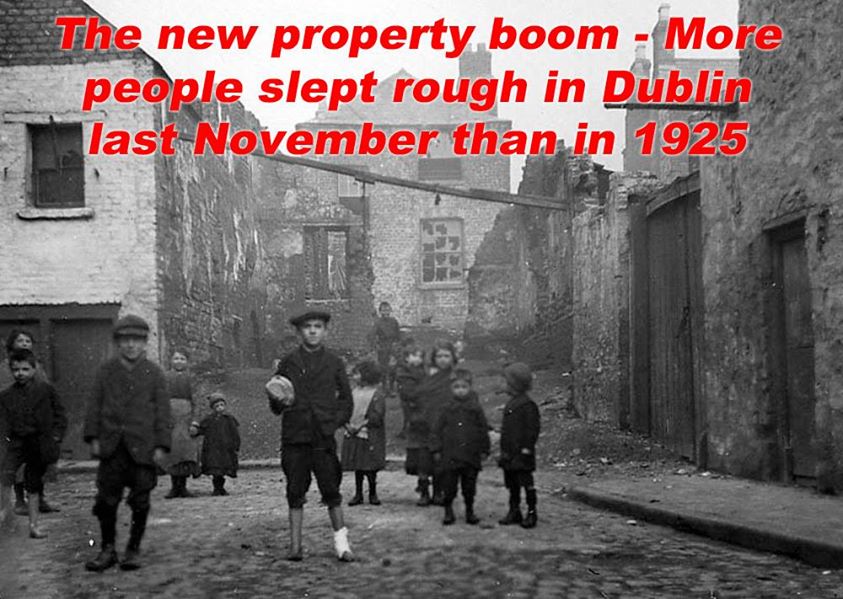 Government policy is creating a fresh property boom that is once more driving the most marginalised onto the streets and into insecure accommodation. The deliberate creation of housing scarcity has seen huge numbers being evicted by greedy landlords, normally making use of the rights stripping clause that allows them to claim they are intending to move a family member into the property. Right now in Dublin who doesn’t have friends being evicted under that clause?