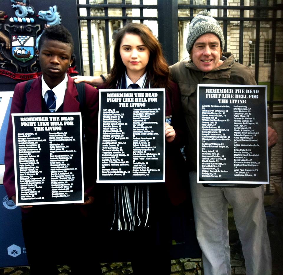 Every 28 hours a person of colour (POC) is murdered by the police force in America. So far 157 known POC have been murdered - we printed out their names to show that they are not just numbers or statistics. Instead of reporting this the media and those with privilege have decided that it is much more important to talk about looting. This is the narrative in a neo-liberal, racist, society that places profit over the lives of people. In a society that is founded upon violence to act violently is to act in self-defence. Freddie Gray didn’t have the opportunity to act in self-defence against the torture he endured which eventually killed him.