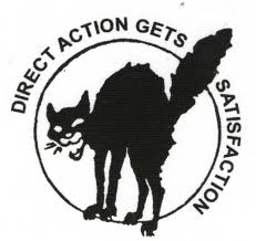The idea of direct action is sometimes simply understood as meaning anything violent, anything from a brick through a window to a full-scale guerrilla war. Our political opponents and enemies go out of their way to spread confusion because they know that in a “battle of ideas” they would lose. Firstly the fact that we are sitting in this room now having this teach in is a result of direct action being taken, doing it for ourselves and not relying on any politicians or anyone else to sort out homelessness or the building social centres.