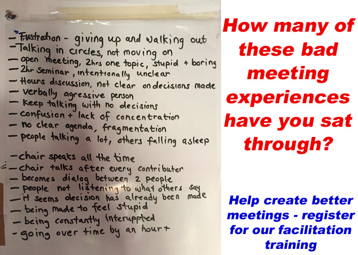 The purpose of the training was to give people the basics of facilitation that can avoid or at least minimise these problems.