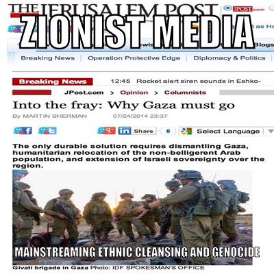 The expression of these views are not isolated, they represent a significant section of mainstream Zionist thinking and could not be freely aired if they did not. In reality they are the honest expression of the Zionist project to create an ethnically pure state, permanently rid of the native people.