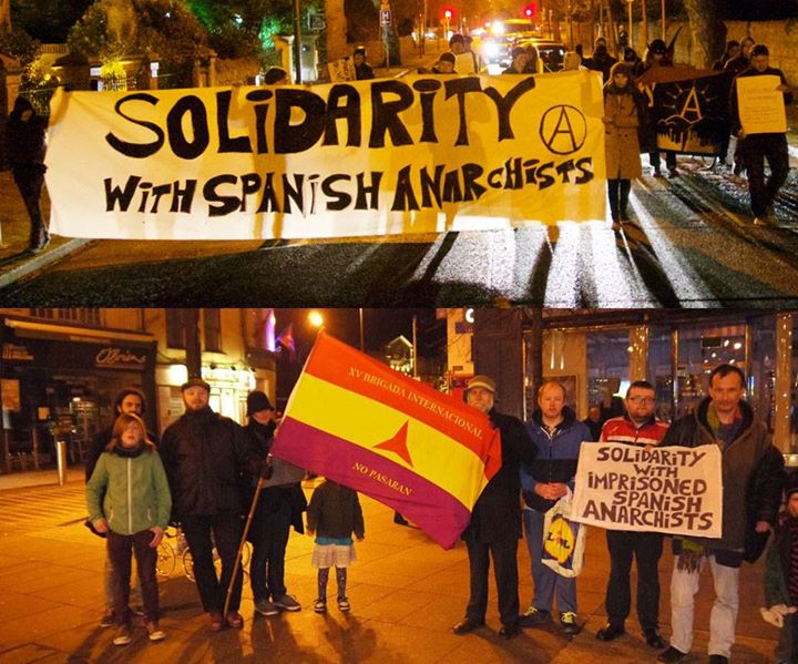 After an international call for protests on January the 16th, anarchists in Belfast, Cork, and Dublin demonstrated in solidarity with the anarchists arrested in the Operation Pandora raids in the Spanish state, along with Basque political prisoners (16 lawyers of Basque activists recently being arrested, and tens of th