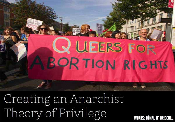 Privilege and the theory around it is a significant topic of debate at the moment among those interested in radical social change. Touching on many issues dear to the hearts of anarchists, it is hard to avoid.(i) Yet, the two are not fitting together as well as they should and there is a sense of unease about this. (ii) Much of this is because privilege theory has emerged from US academic circles rather than anarchist ones and, ironically, has been co-opted to protect middle- class privileges. (iii) This is a situation in need of repair if we are to maintain our links with feminist, anti- racist and other struggles against oppression. If we are to create a mass movement capable of social change then it has to be able to engage with everyone in the first place.