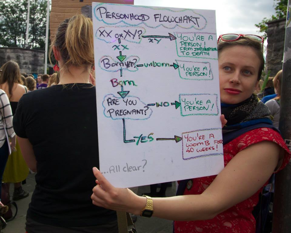 In this society we are told that we have certain rights; the right to vote, the right to protest, the right to bodily autonomy (i.e. the right to decide what happens to our bodies). All of these rights can be taken away in a flash at the whim of those in power. But you cannot take away from a pregnant person that which they don’t have: bodily autonomy.