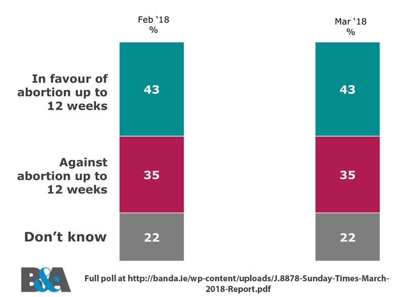 The Sunday Times with Behaviour & Attitudes have run two very useful polls that give a strong sense of how the campaign to Repeal the 8th Referendum is going. The overall story the poll results tell is bad for the Vote No campaign and promising for the Vote Yes campaign. If the referendum had been held at the time of the March poll then Repeal would have been carried by 64% to 36%, almost 2:1. The polling data also shows No has a soft vote that is very much larger proportion than the equivalent soft Yes vote. This means if anything between now and referendum day the polls are likely to drift towards repeal.