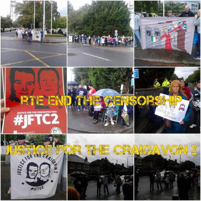 On Saturday 24th of September the Anti-Internment Group held a protest outside RTE (Irish television and radio station) studios in Donnybrook south Dublin. The protest was held because of RTE’s censorship against the case of the Craigavon 2. The Craigavon 2 have been in jail since March 2009, Brendan McConville and John Paul Wootton (who was only 17 years of age at the time) were accused of the shooting dead of a Police officer.