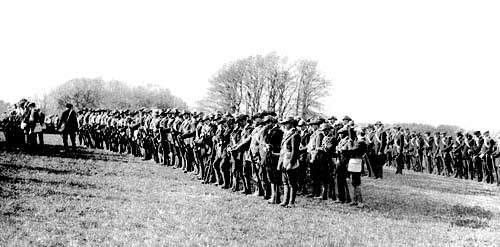 The year 1919 saw the greatest demonstration of the potential of Irish workers, north and south to take over the running of society but the events of the following years cemented the division that would do much to end workers militancy. In terms of working class struggle the periods of militancy of northern and southern workers coincide. Yet the working class was divided and these struggles remained almost completely isolated from each other. (Image: UVF training in 1914)