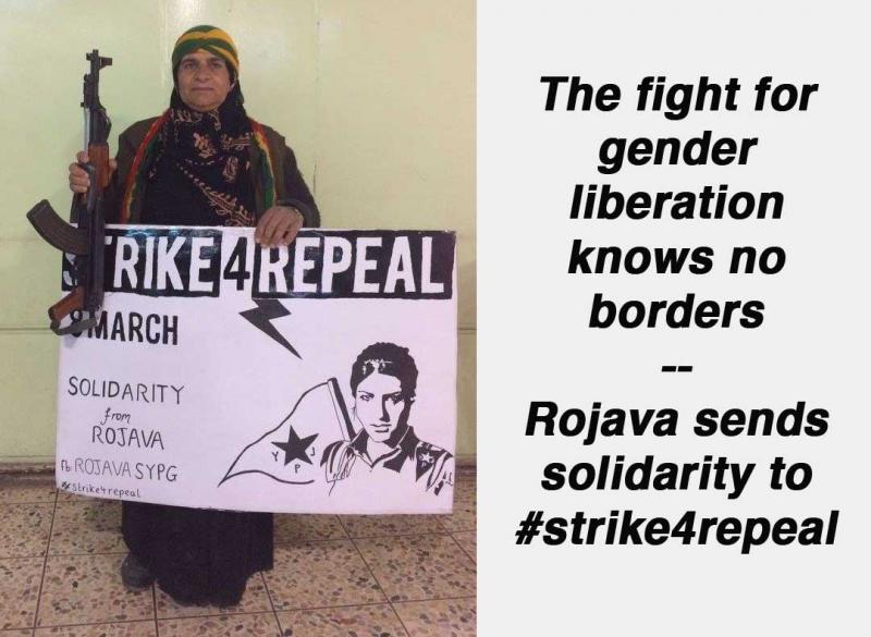 In what is by any measure a wonderful mark of solidarity the women fighting ISIS in Rojava have taken the time to send solidarity greetings to next Wednesdays #strike4repeal in Ireland.