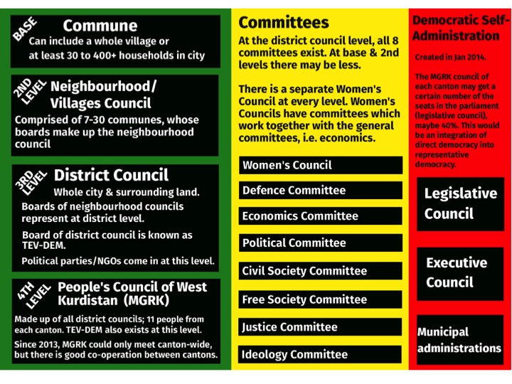 In Northern Syria ISIS has been driven back by people fighting for a society based on principles of direct democracy, gender equality, and sustainability. From the their revolution in 2012 they have created a de facto autonomous region in which this ideas are being implemented.