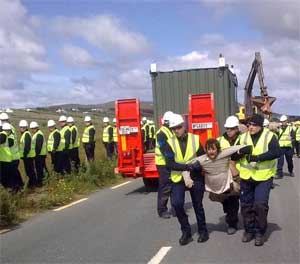 Rossport Solidarity Camp (RSC) reported Friday morning that Shell was finally resumed work at the compound in Aughoose. In response a national day of a action has been called for 29th July. The compound in Aughoose is where Shell intend to start digging the tunnel to house a section of the experimental high pressure raw gas pipeline that has been opposed for a decade by the local community.