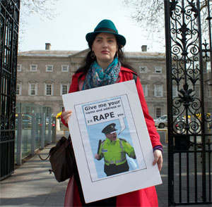 A couple of hundred people turned out in the sunshine this afternoon to show solidarity with the women who are spoken about in the Garda rape comment audio which was released earlier this week. The message of todays event, which was organised by an ad hoc group of organisations and individuals concerned with justice, equality, and women's and human rights under the heading 'Say no to the trivialisation of rape', was that rape is not a joke. Organiser Susan Ms McKay from the National Women's Council said: "Jokes about rape are never funny. Rape is recognised in law as being second only to murder in terms of gravity. An Garda Síochána are responsible for upholding the law and for protecting the public. Their behaviour must be exemplary, and they must respect the people they serve. That includes women. We are half the population, and we are the majority of the population at risk when it comes to crimes of sexual violence."