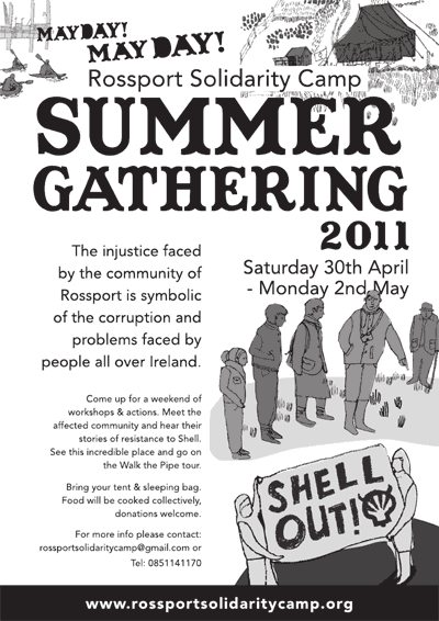 Erris: The Rossport Solidarity Camp have called the annual Shell to Sea Summer Gathering for the May Bank Holiday weekend this year so that it happens while key construction is still underway. Shell to Sea campaigners from around Ireland will be travelling to the camp for a weekend of protest and meetings, come and join us. Local Shell to Sea groups will be helping people to travel, already Dublin are running a bus down on the Friday.