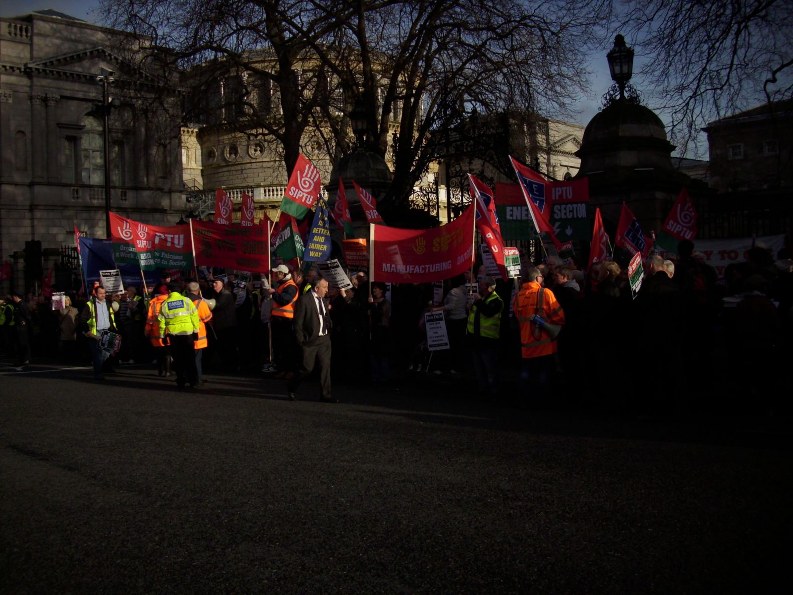 On Saturday last (24th November), approximately 15,000 people marched through Dublin to demand an end to austerity. It was a lively and vociferous march that seemed to herald a renewed sense of militancy among those attending. This militancy was most evident when Eugene McGlone, president of the Irish Congress of Trade Unions, was roundly booed when he rose to speak. Despite attempts to claim that this booing was orchestrated by Sinn Fein and the ULA, it was clear that a great many of those booing were doing so spontaneously and were expressing their frustration at the lack of action by the trade union leadership in terms of organising a real fightback over the past few years.