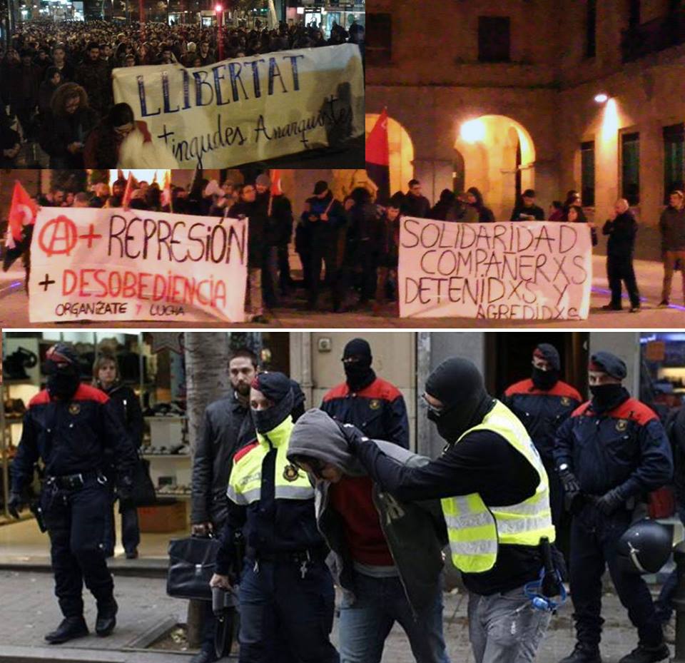 Demonstrations took place overnight across the Spanish state against the series of police raids targeting the anarchist movement. The Barcelona demonstration of 2000 people was led by a banner proclaiming "If you touch one; you touch all".
