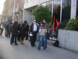 Today the WSM joined a demo in solidarity with those arrested in Copenhagen since the eviction of Ungdomshuset, an autonomous social centre, on Thursday 1st of March. Around 20-30 people from Anarchist Prisoner Support, Polish Anarchist Federation and the WSM gathered outside the Danish embassy on St. Stephen's Green.