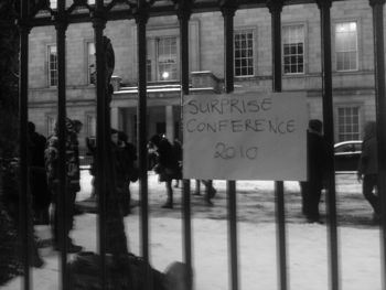 Roughly 50 students occupied the grounds of the Department of Education today in the bitter cold, erecting a marquee to hold a 'Surprise Conference.' Garda looked on until after a few hours when apparently a deal was reached whereby the students would pack up early and their would be no arrests. Given the cold that police were probably keen to get back indoors for a cup of tea. The Department was invited to participate but failed to provide a speaker.