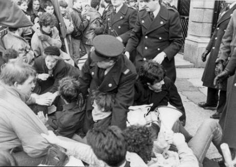 Sit down protest at the Dail circa 1988, 16 students were arrested