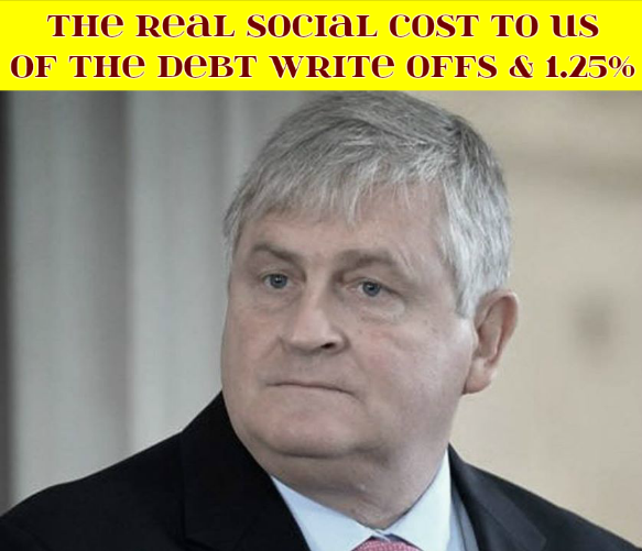 The three debt write-offs the O’Brien companies got are the equivalent of 1,400 years worth of that core funding. If Catherine Murphy’s Dáil allegation about the preferential interest 1.25% rate he was given are correct then that cost us 30 millions a year, which is around 125 years core funding for every year the loan is not repaid in interest terms alone.