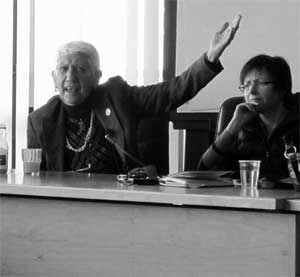 Selma James founded the Wages for Housework campaign and was the first spokesperson for the English Prostitutes Collective. She has been has involved with anti-sexist, anti-racist, anti-imperialist campaigns from a very young age. She was born in Brooklyn, New York and as a young women she worked in factories and was a full time housewife and mother. In 1955 she moved to England, where she married writer and historian CLR James. Since 2000 she has been international co-ordinater of the Global Women's Strike.