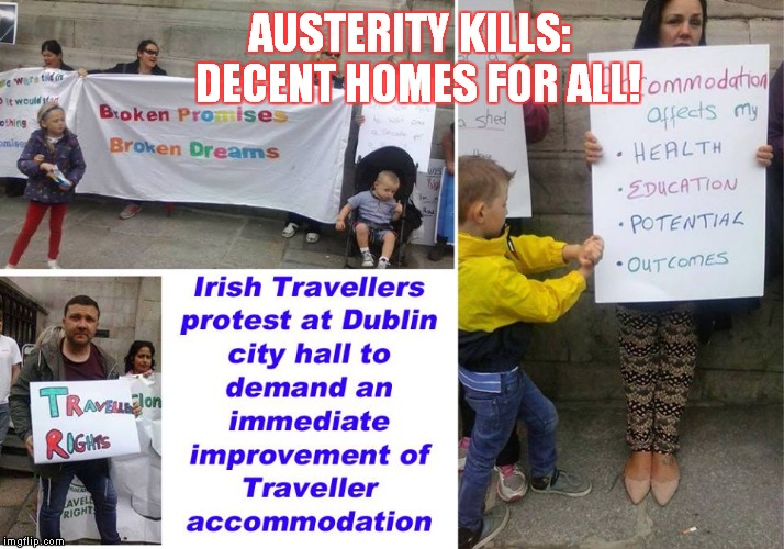 Last weekend, ten people died in a fire at a halting site in South Dublin. Thomas Connors, Sylvia Connors, Willie Lynch, Tara Gilbert, and Jimmy Lynch and five children lost lives. Their deaths are a tragedy, and we mourn their loss. But we are also angry. Because we know the loss of their lives was not the outcome of chance or blind fate. Our society, its laws and its institutions are designed to marginalise, to penalise and to discriminate against Travellers. So long as we accept these forms of oppression and exploitation, tragedy will follow tragedy.