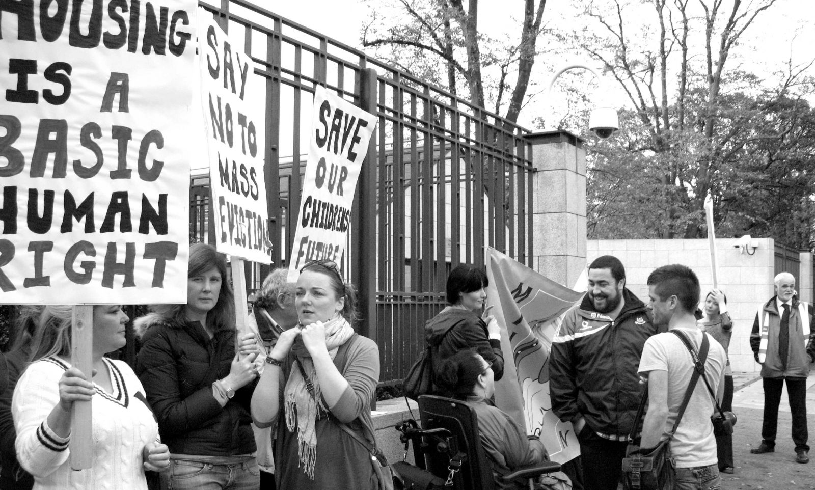 Up to 800 people gathered in Central Bank plaza and marched on the Dáil with a clear message for the government; change up your policy and start protecting the vulnerable or you will find yourselves out of power in the wilderness along with the previous governing party. Banners were on the march from political organisations, community groups, parents associations, and National Traveller organisations. The mood was one of strong defiance.