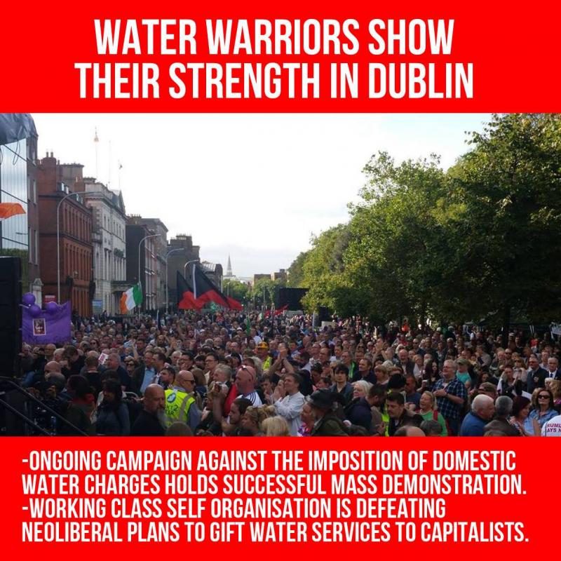 It has been fully understood since the very beginning of this campaign that Irish Water was simply a vehicle to be used for the privatisation of water services and infrastructure in Ireland. The right wing, neo-liberal political establishment wished to gift the most vital of all resources to capitalist interests who would squeeze as much profit out of commodified water as possible, while cutting off the water supply to anyone who couldn't pay their extortionate charges. However, due to a huge effort on the part of working class organisers, the water charges appear on course to be abolished. The significance of this campaign in laying down a milestone for working class self organisation will be felt for years.