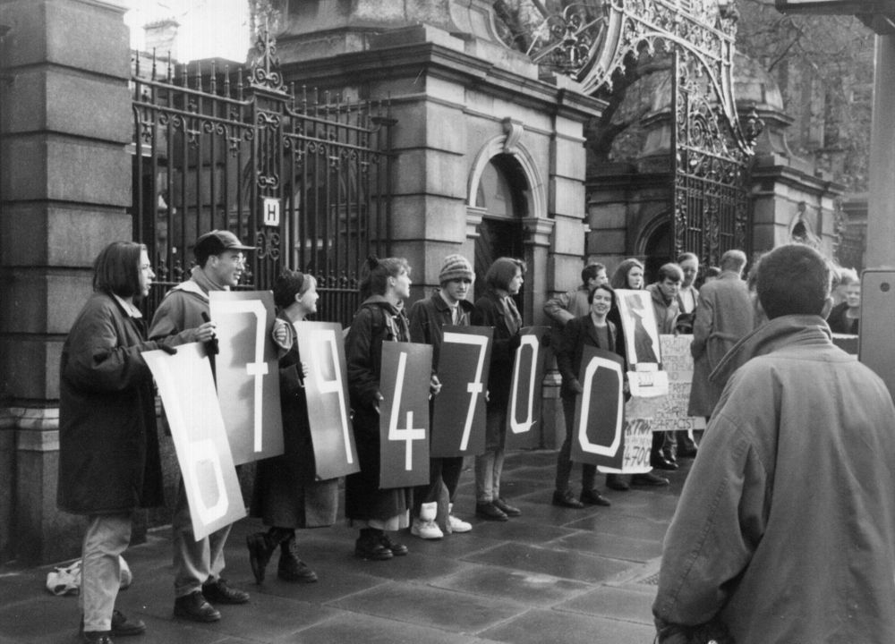 IMAGE: DAIC picket at Dail with the then illegal abortion information number
